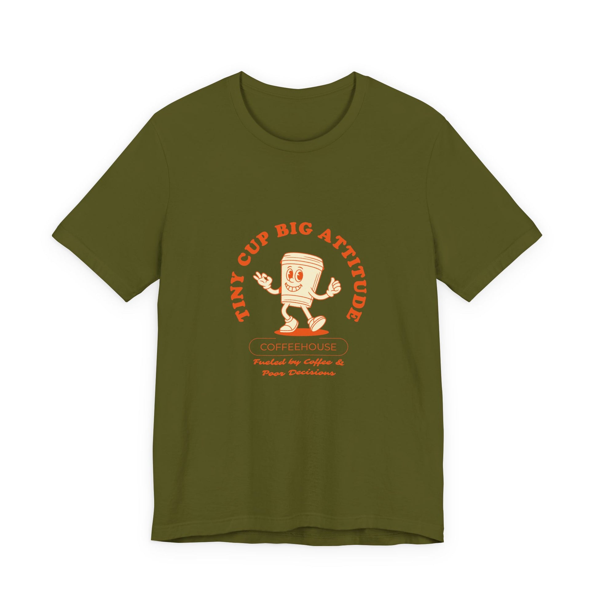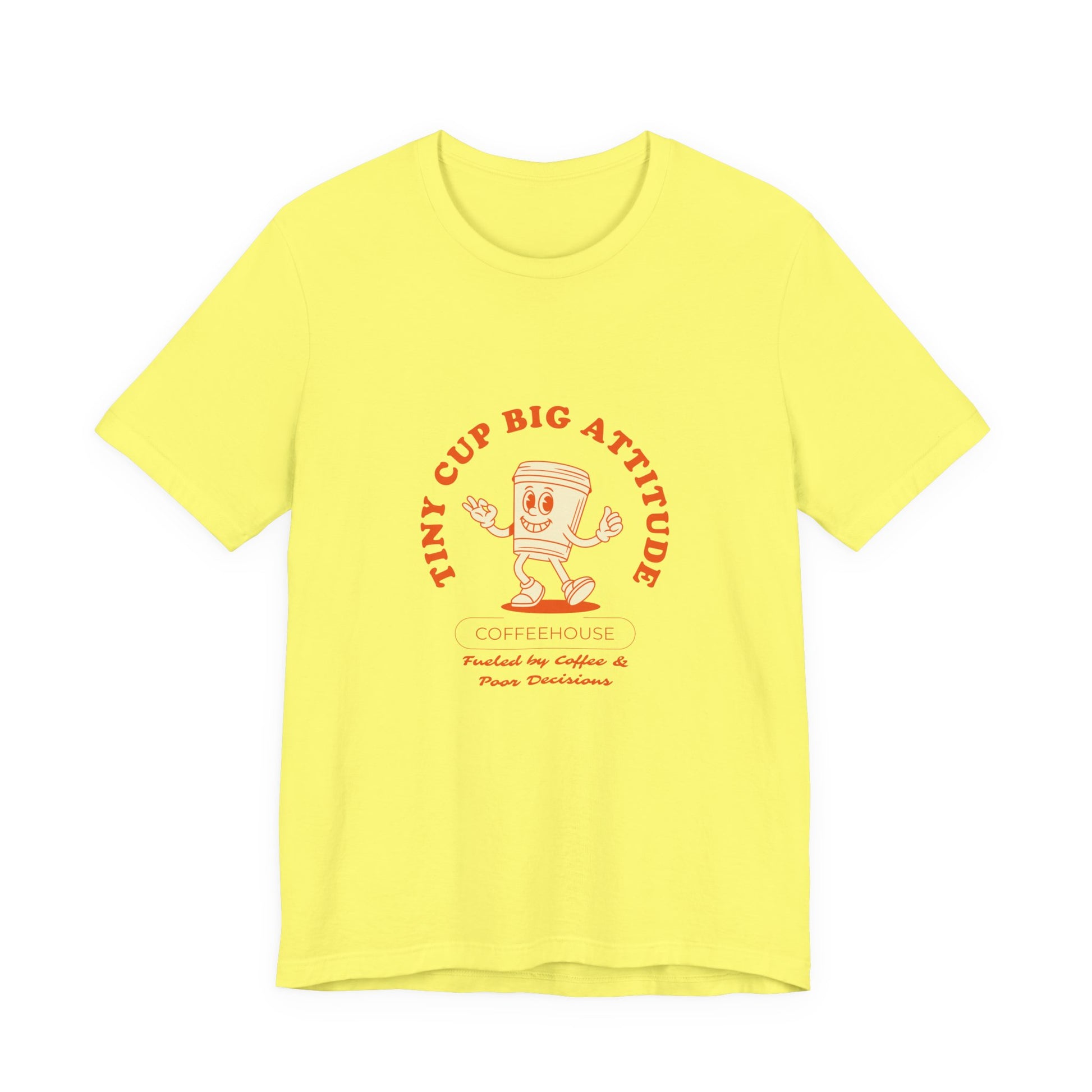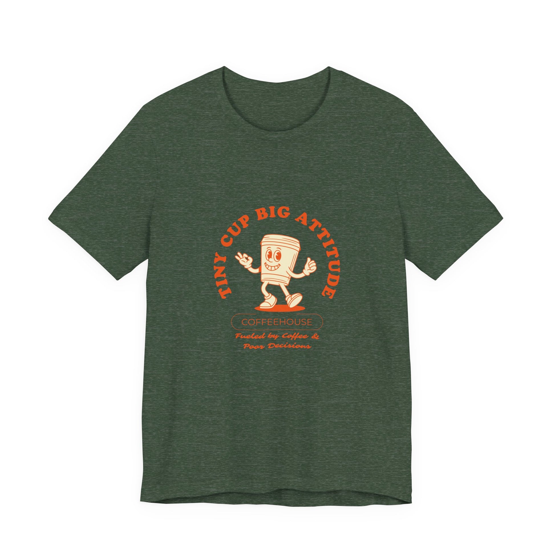 Lightweight, soft, and slightly lived-in — this cotton tee feels like a favorite from the first wear. The front features a cheerful, vintage-inspired coffee cup illustration with the phrase “Tiny Cup Big Attitude” in warm, muted tones, giving the shirt a playful, café-ready vibe. Crafted from 100% Airlume combed and ring-spun cotton (with blended options for heathers), it breathes easily and layers well beneath jackets or over shirts. Thoughtful construction — side seams, ribbed knit collar, shoulder tape and a tear-away label — keeps the fit steady and comfortable through repeated wears. Ethically produced with REACH compliance and responsibly sourced blanks, this tee suits casual days at the coffee shop, bustling mornings between shifts, or relaxed weekends spent with friends and espresso in hand.