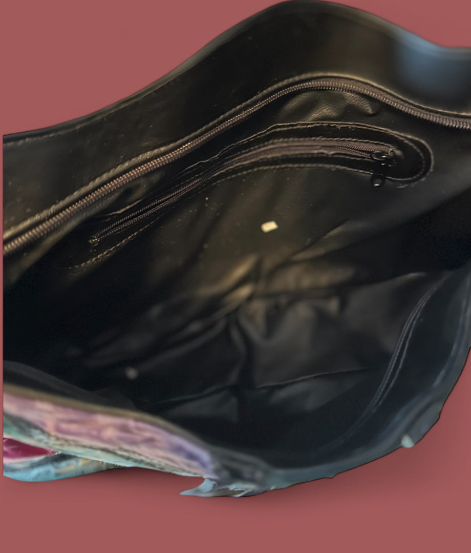 Its roomy interior and long strap make it both stylish and functional, perfect for nights out, festivals, or adding a pop of vintage energy to everyday outfits. This bag embodies that fearless retro flair — part rockstar, part disco, and all statement.