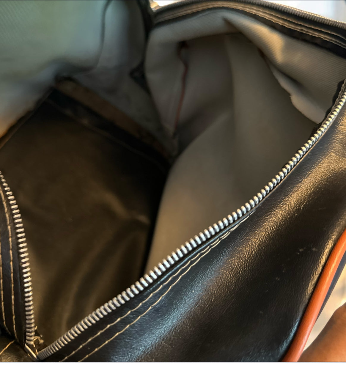 Channel pure retro vibes with this authentic vintage De Kalb Bear Band duffel bag, likely from the late 1970s to early 1980s. This piece is crafted from black leather with bold orange piping and the iconic De Kalb Bear Band logo printed in orange on the front. It’s got that old-school marching band charm that collectors and nostalgia lovers can’t resist.