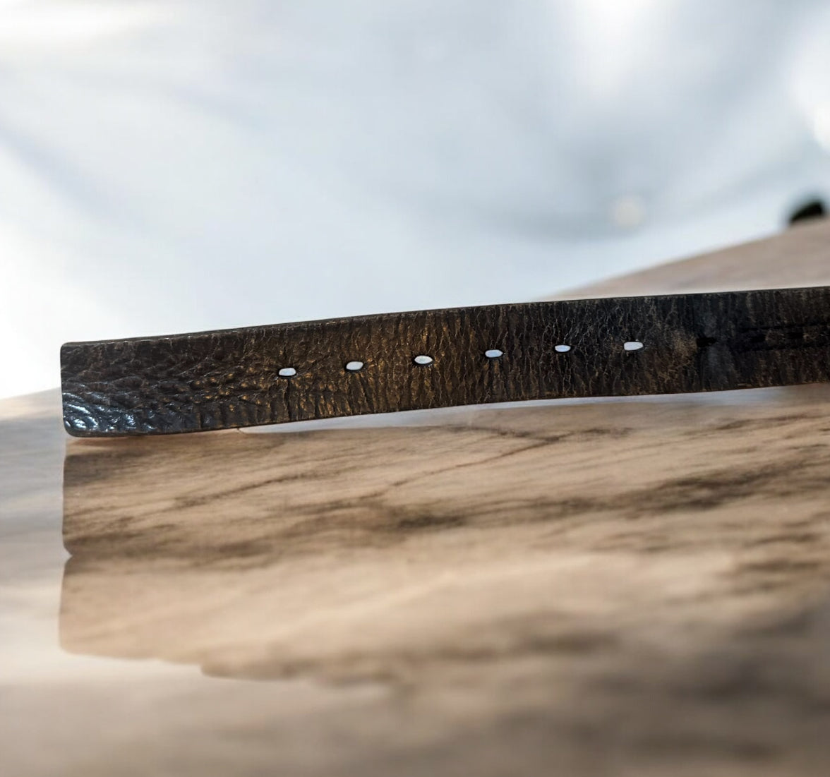 A true piece of history right here — this vintage black leather belt carries all the grit, character, and charm of old-school craftsmanship. Made from thick, genuine leather with a naturally distressed patina, it’s the kind of belt that tells a story.