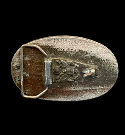 This vintage oval belt buckle features the Hambel Freight Lines logo with decorative winged horse freight imagery. Cast in a brass/bronze tone metal with natural patina, this buckle was likely produced as a company promotional or employee piece. A unique addition for collectors of trucking, transportation, or advertising belt buckles. Fits standard belts.