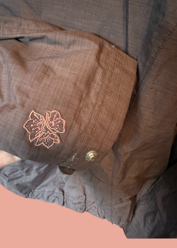 Floral embroidery accent on sleeve
