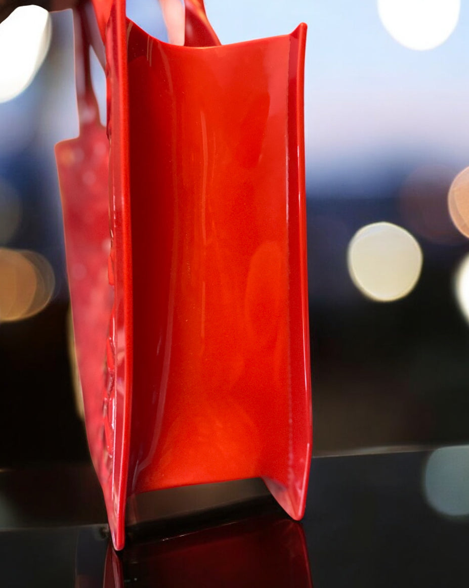 This bold and glossy vintage red rubber tote purse is a total statement piece straight out of the early 2000s playbook — just like the ones seen in Mean Girls and other Y2K cult classics. Its high-shine quilted texture gives off major designer energy, while the structured body and sturdy top handles make it as practical as it is glam.