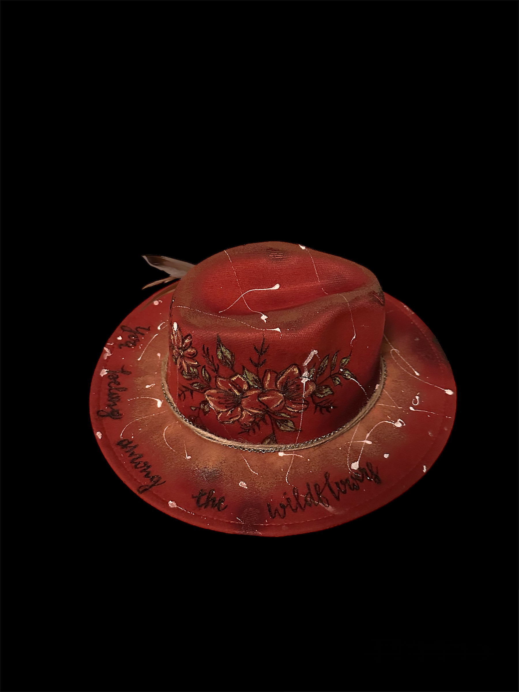 Custom Cowboy Hat Wood Burned & Hand Painted theme “You Belong Among the Wildflower” with Custom Hat Band. Hat size is one size fits most.